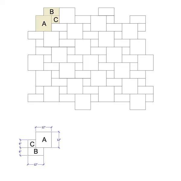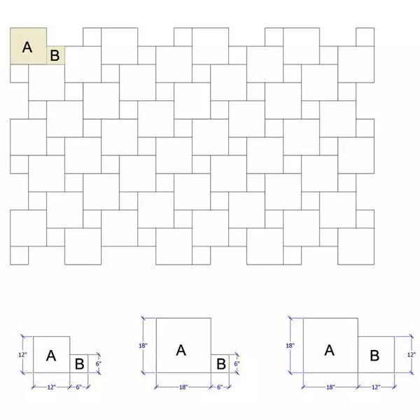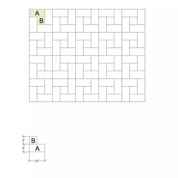 看著雖然簡單,但是在鋪貼的時候大小磚的尺寸卻有三種搭配方式。