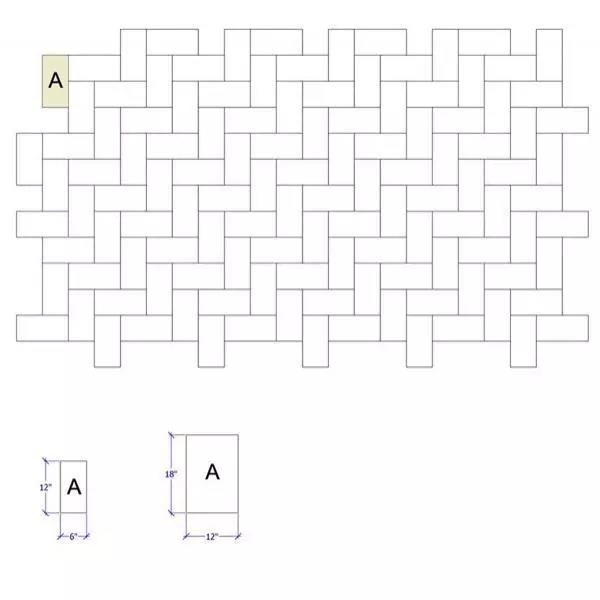 可以用兩種或者多種不同顏色的瓷磚拼,比較復(fù)古的一種鋪貼方式。一定要注意正方形和長方形的尺寸。長方形的長邊必須為寬的2倍,正方形邊長必須與長方形的寬尺寸一致。